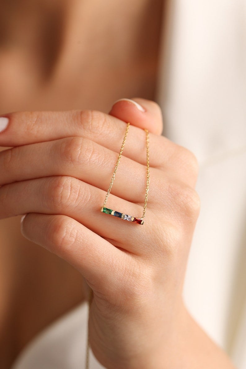 ✨Baguette Birthstone Necklace, Family Birthstone Necklace💎Bridesmaid Gift, Gift for Mom