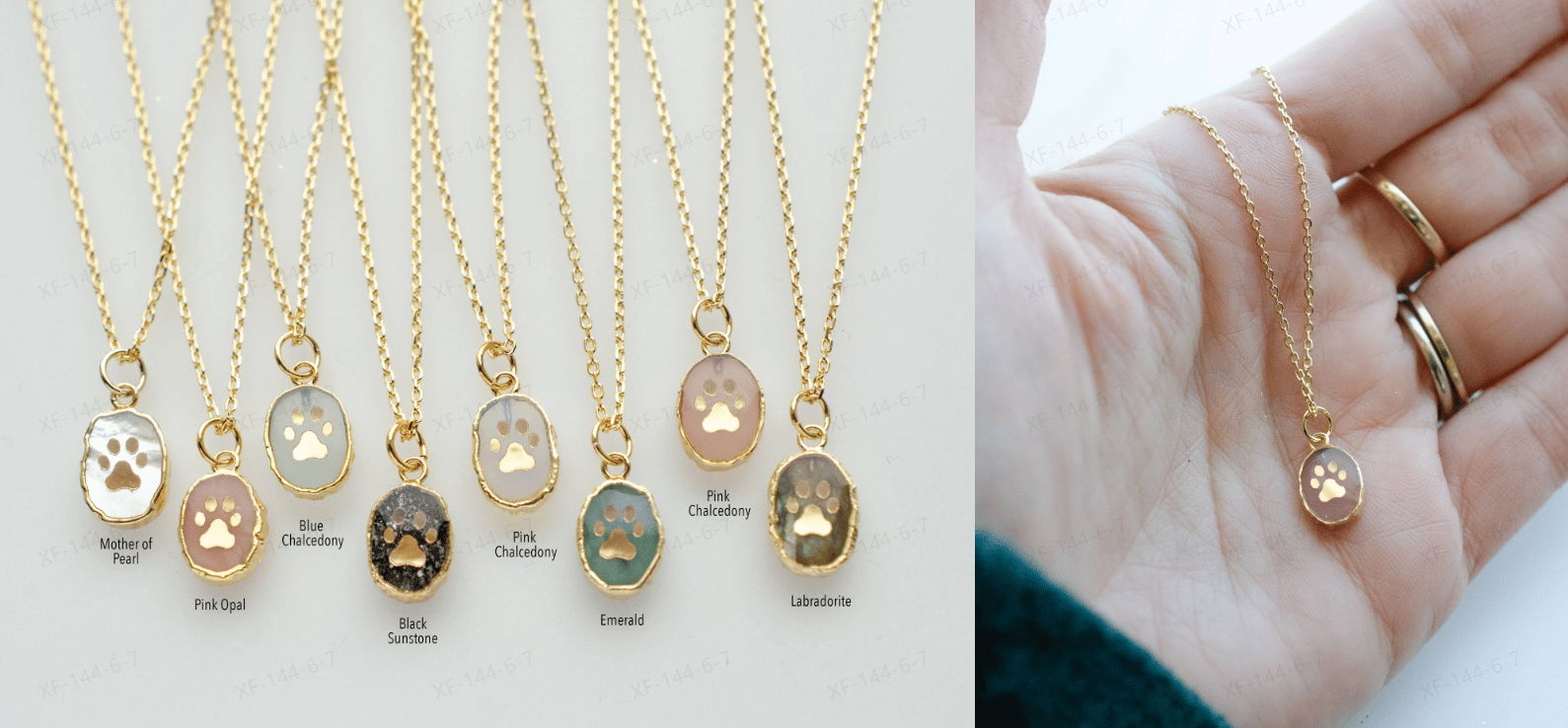 Natural gemstone necklace with paw print symbol. We love our pets, they bring us so much joy!