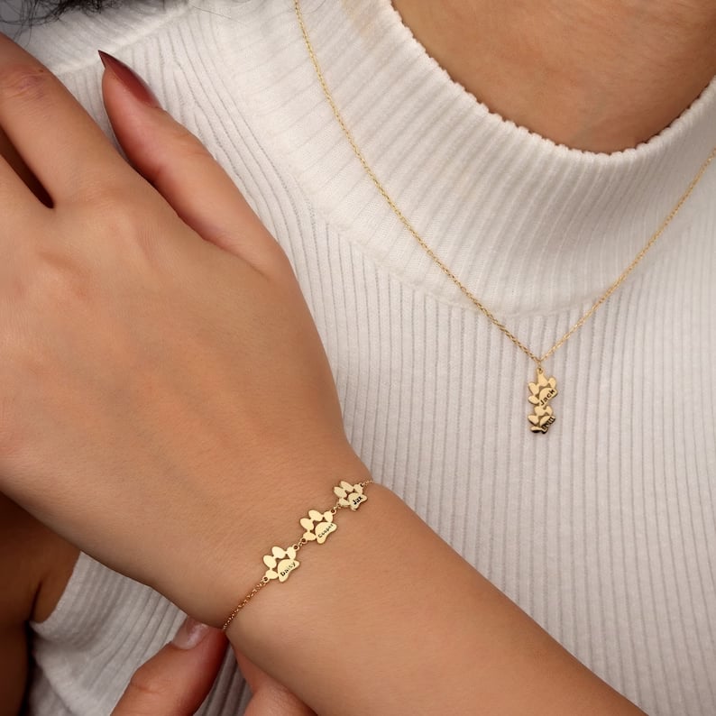 🐾Personalized Pet Paw Necklace • Pet Name Necklace • Paw Print Name Necklace
